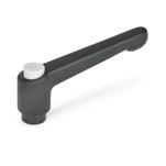 Adjustable levers GN 307 are ideal whenever parts have to be clamped in a confined space or in a particular lever position. The insert is connected to the lever via serrations that can easily be disengaged.
