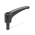 Las manijas ajustables EN 500 han probado ser ideales cuando es necesario fijar piezas en un espacio confinado o en una posición particular de la manija. El inserto se conecta a la manija por medio de bordes dentados, los cuales pueden desacoplarse fácilmente.