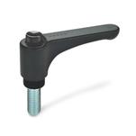 Manijas ajustables Plástico, tipo espárrago roscado, con componentes de acero, con botón pulsador, Ergostyle®