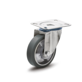 Estas robustas ruedecillas están diseñadas para soportar elevados esfuerzos mecánicos y facilitar el traslado de cargas pesadas sobre diversos tipos de suelos. La banda de rodadura de la rueda puede estar hecha de caucho, poliuretano o poliamida, mientras que el cuerpo de la rueda está disponible en plástico o metal. Con frenos bloqueables y una variedad de capacidades de carga, garantizan el máximo control y eficiencia en el trabajo diario.