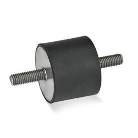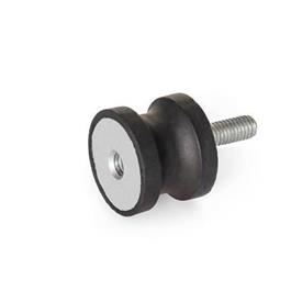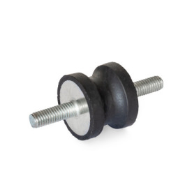 Los soportes de absorción de vibración se fabrican siempre con un elemento de elastómero. Están hechos de caucho natural (NR), goma acrilonitrilobutadieno (NBR) o goma de silicona resistente a la temperatura y ventajosa higiénicamente. El elemento de elastómero está conectado por uno o ambos lados con una arandela de retención o casquillos y espárragos roscados con placa de cubierta. Los elementos de elastómero y las piezas metálicas están firmemente unidos mediante vulcanizado.