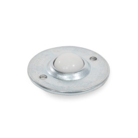 Las unidades de transferencia con bolas se usan en la construcción y transporte de máquinas y plantas. Una gran bola de carga se monta en un alojamiento sobre mu-chas pequeñas bolas de soporte. La forma del alojamiento permite que la bola de carga ruede en cualquier di-rección.